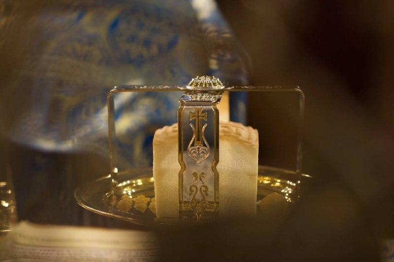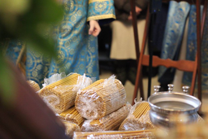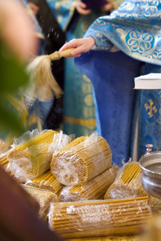 По окончании Литургии было совершено славление празднику, а затем священнослужители по традиции освятили свечи.