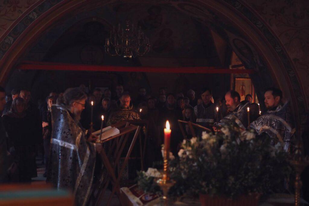 В пятницу вечером, в преддверии Великой Субботы, священнослужители совершили утреню с чином погребения Господа нашего Иисуса Христа — один из самых проникновенных и скорбных моментов церковного года. Этот чин воссоздаёт события, последовавшие за Крестной Смертью Спасителя. Богослужение пронизано молитвенным воспоминанием о снятии Тела Иисуса Христа со Креста, Его оплакивании и погребении.