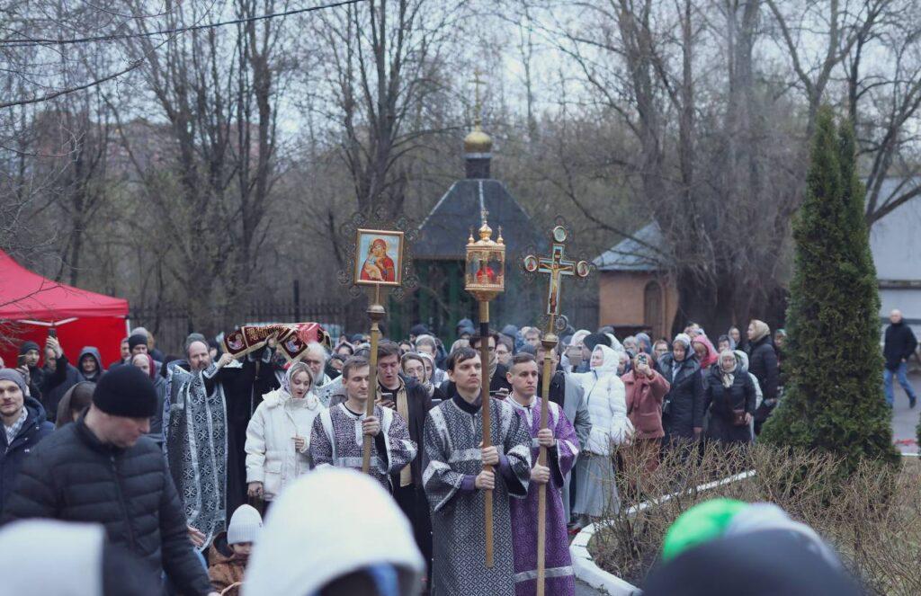 В канун Великой Субботы в храме Покрова Богородицы в Братцеве совершили утреню и крестный ход с Плащаницей