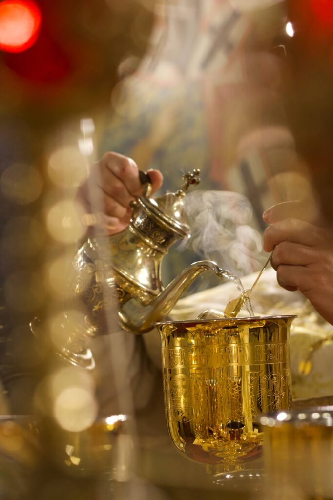 После каждой Литургии для прихожан организовали торжественное угощение.