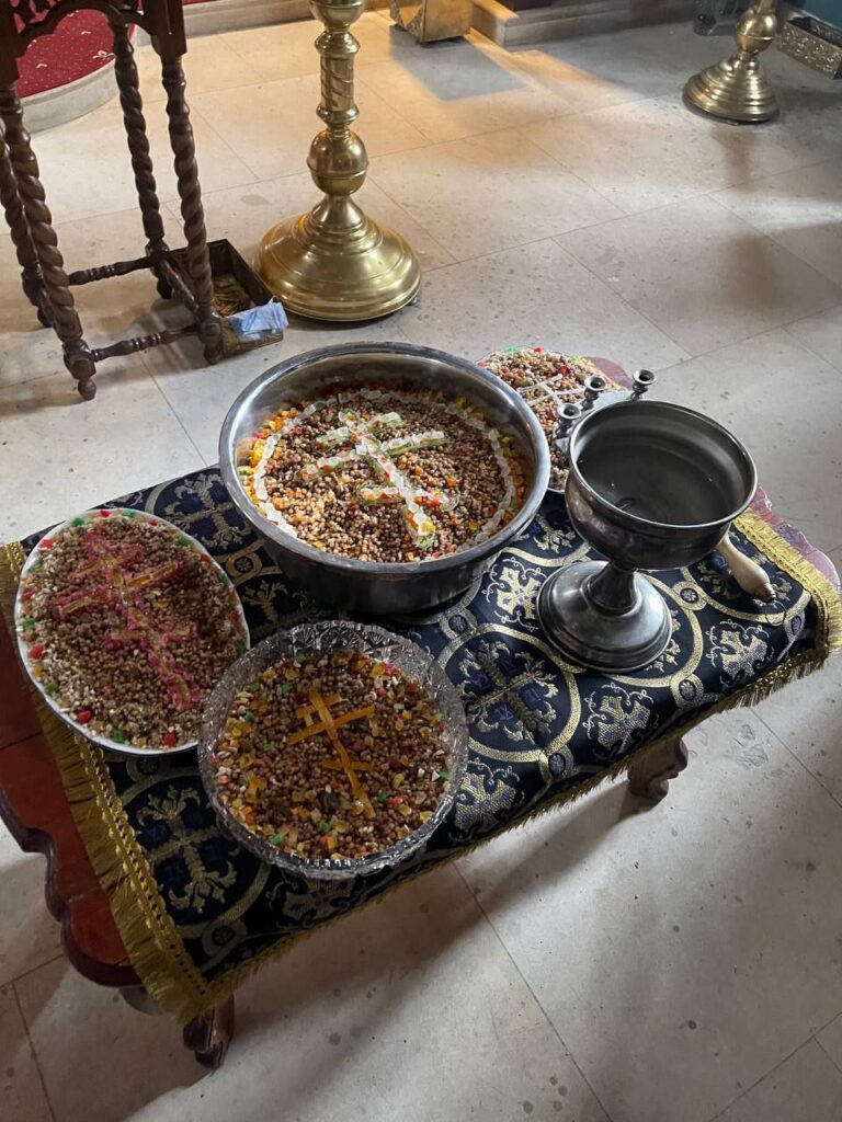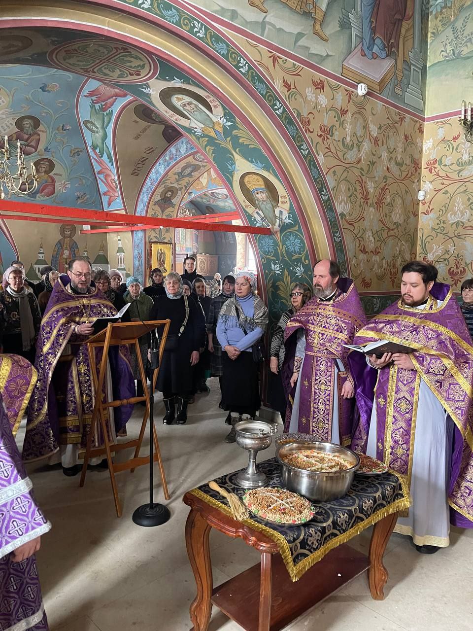 По окончании Литургии клирики храма совершили молебен великомученику Феодору Тирону и освящение колива, приготовленного в память святого.