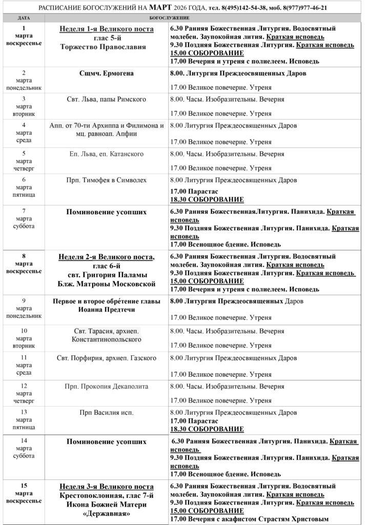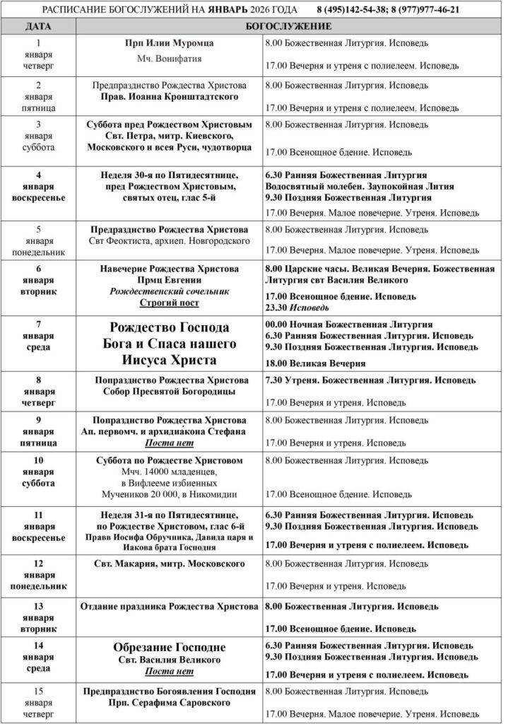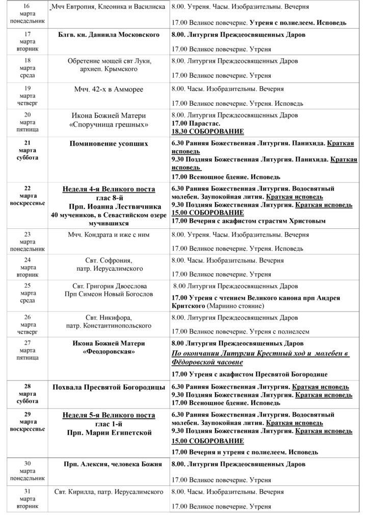 Расписание богослужений
